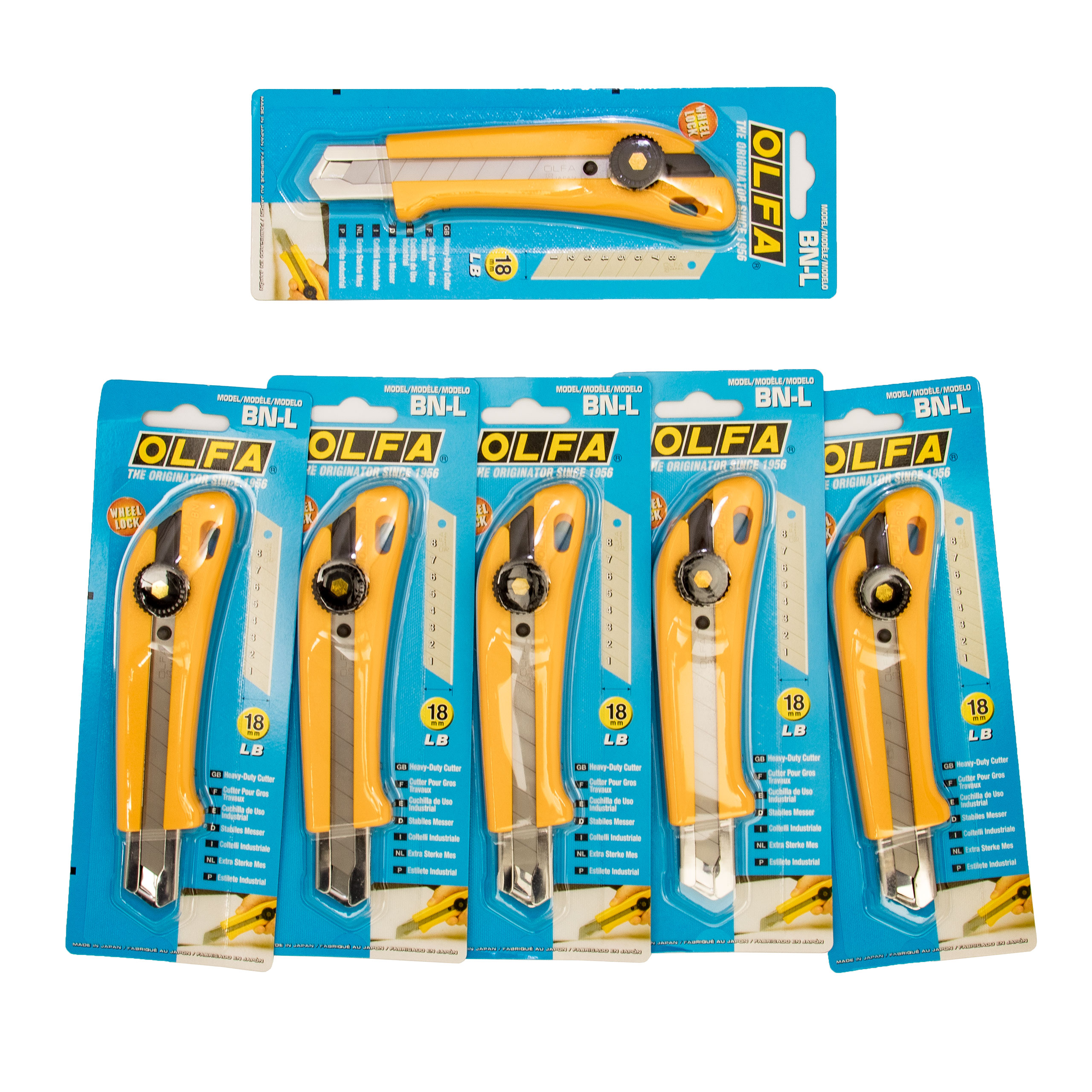 Olfa 6 Stück Cuttermesser ergonomisch geformter Industrie Cutter BN-L